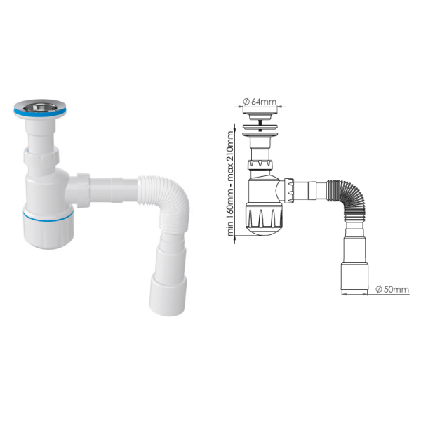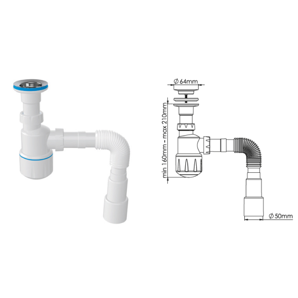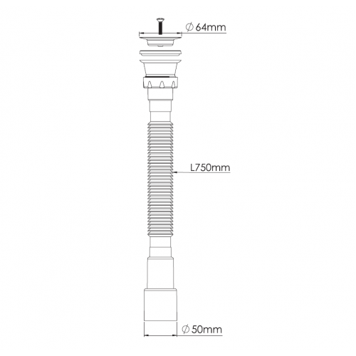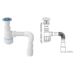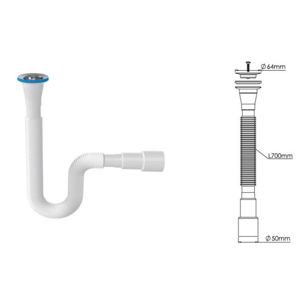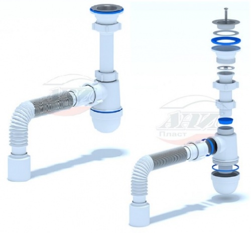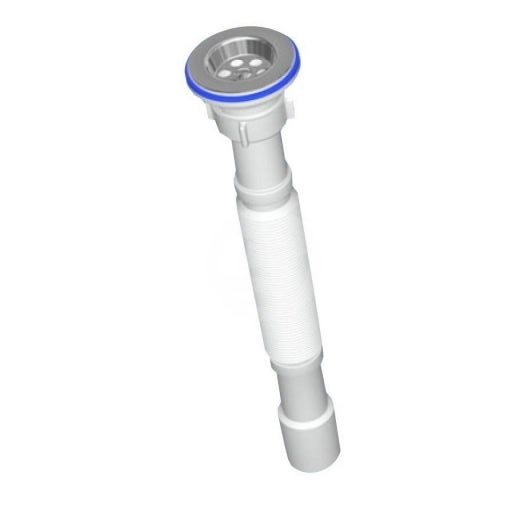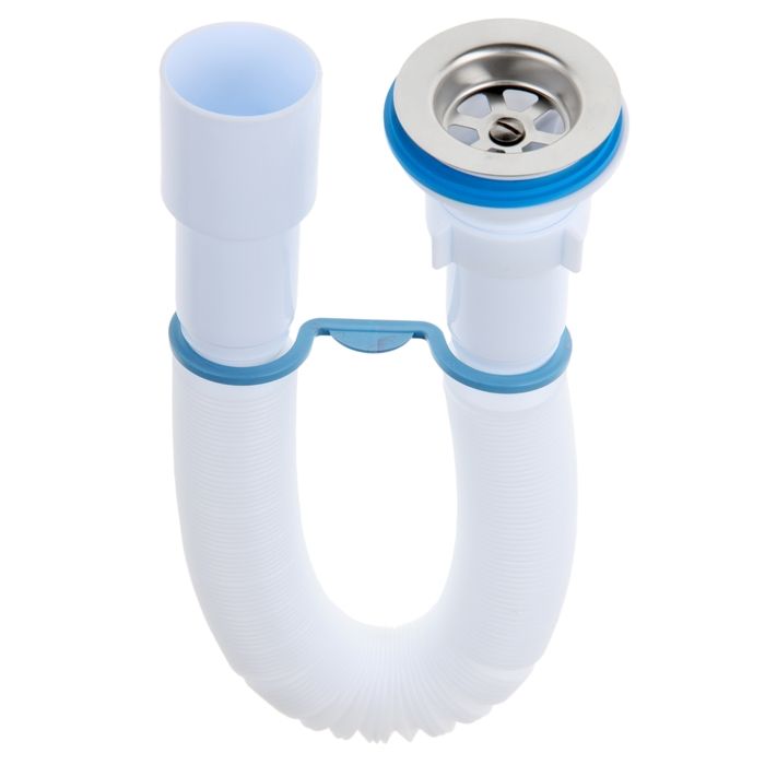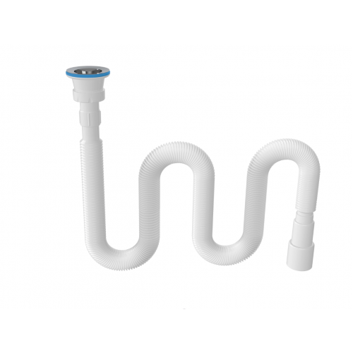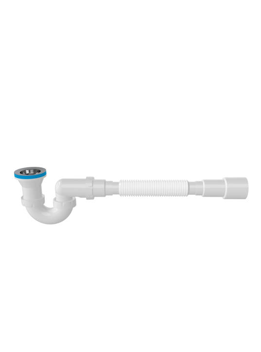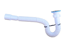 ьзуется для соединения сифона с торцевым выходным соединением с диаметром 40 мм или выпуска с резьбой 1 ½" и канализации с входом д.50 мм или д.40 мм. Длина гибкой трубы 470-1250 мм.
