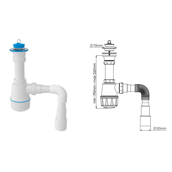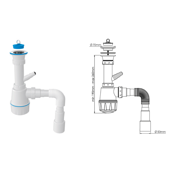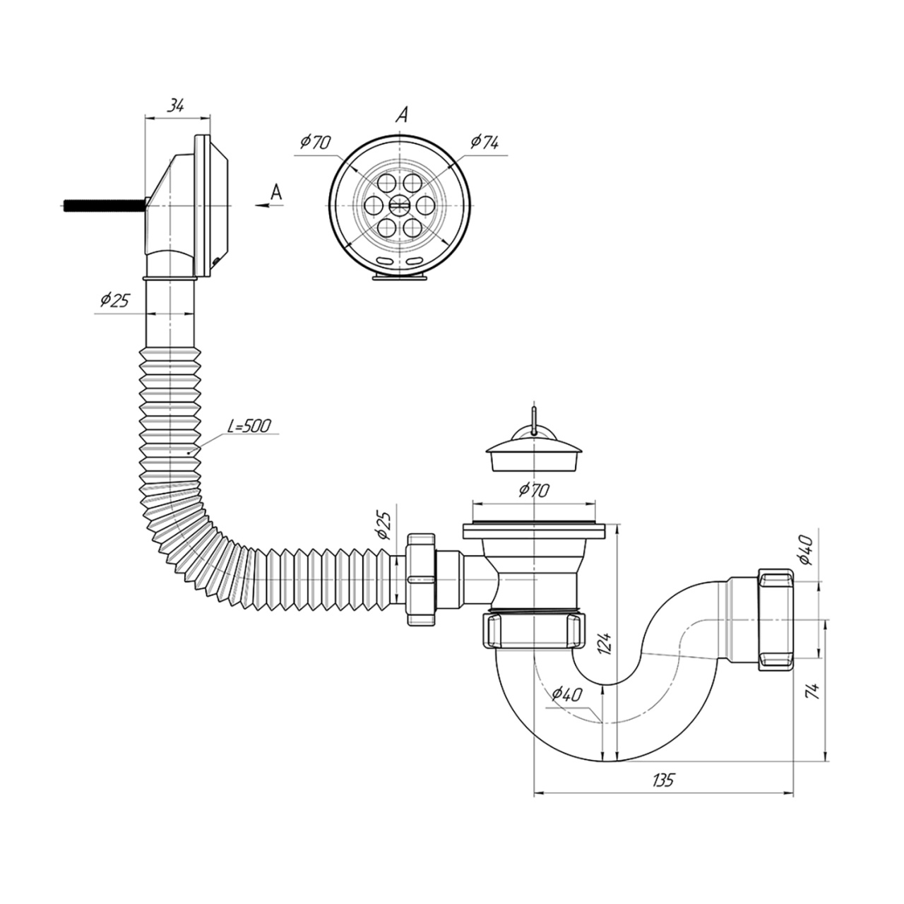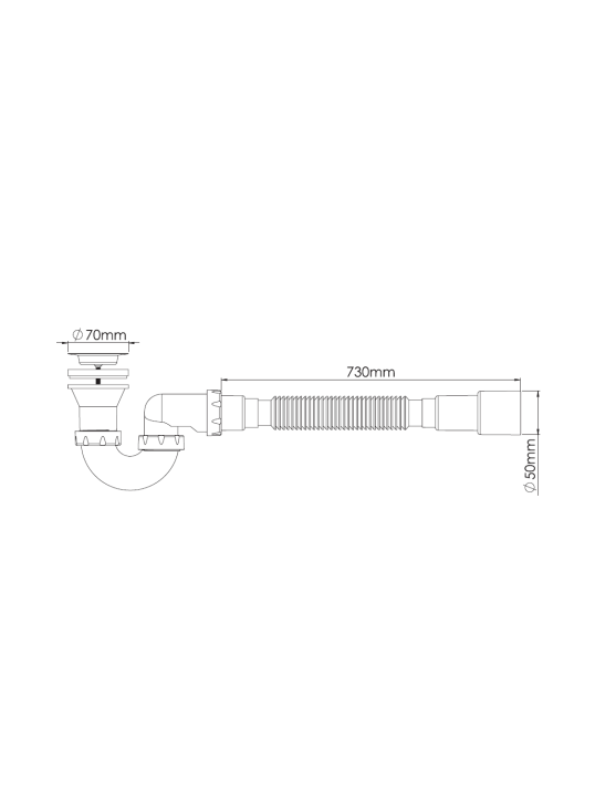 ой д.70 мм и гибкой трубой 40-40/50 для раковины или мойки.