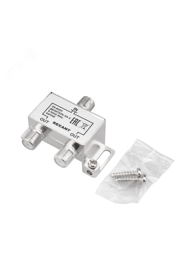 Делитель оснащен одним входом под F разъем и двумя выходами, также под F разъемы. Сигнал, подающийся на вход, делится на две равные части и передается на выходы. Для подключения кабелей используются стандартные F-разъемы. Полоса пропускания делителя от 5 до 1000МГц, эти частоты используются для стандартного эфирного телевидения.