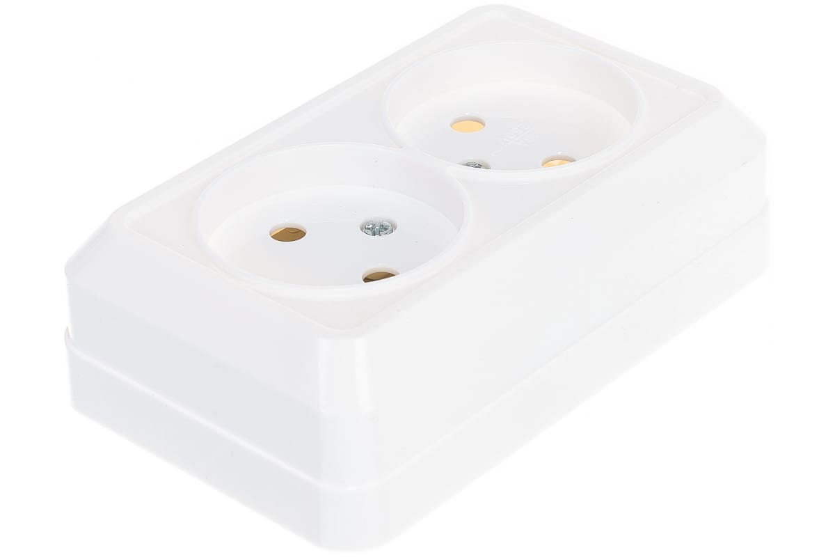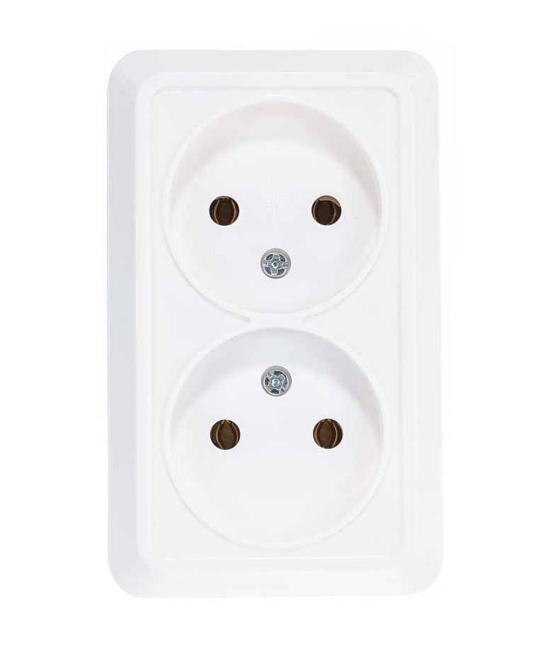 Двойная розетка без заземления, белая Олимп О0102 выполнена из АБС-пл...