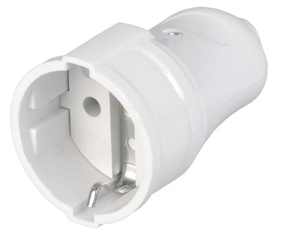 исах, домах или производственных предприятиях открытым способом. Однопостовая розетка имеет компактный пластиковый корпус универсального белого цвета.