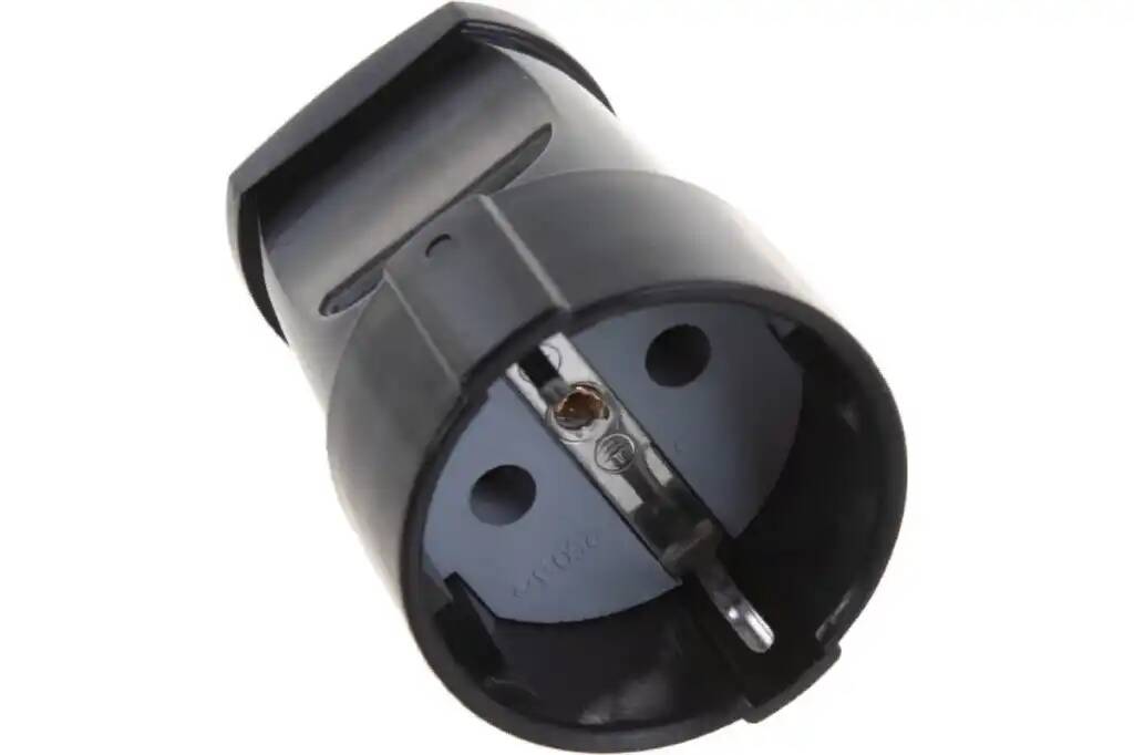 Штепсельное гнездо с заземлением, черное имеет разборную конструк...