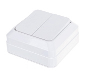 кладного) монтажа и эксплуатации в бытовых помещениях. Материал корпуса - пластик классического белого цвета. Двухклавишное исполнение позволит регулировать интенсивность свечения многоламповых люстр или светильников.