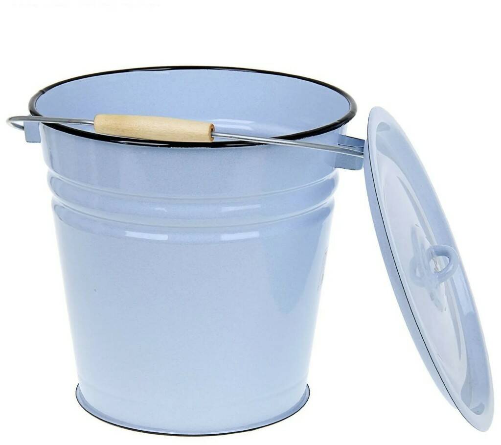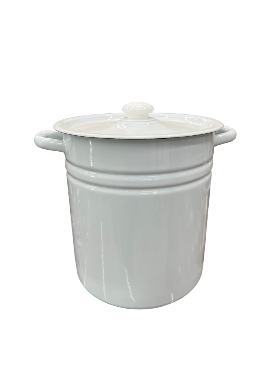 Цилиндрическая эмалированная кастрюля 12 л светлая с пластиковой к...
