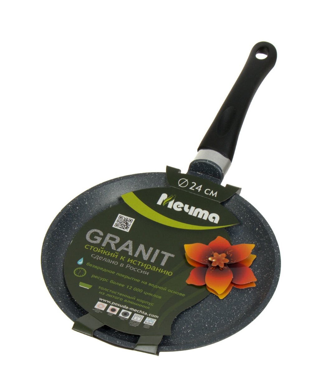Сковорода блинница гранит из литого высококачественного пищевого алюминия «Мечта» станет незаменимым инструментом и надежным помощником на вашей кухне.