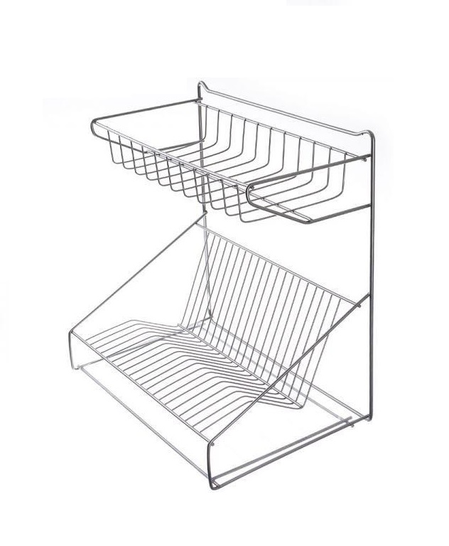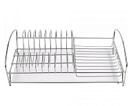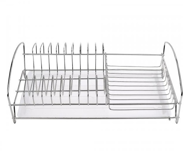 стали и пищевого пластика. В сушилке предусмотрены отделения для 10 тарелок, а также простарнство для чашек. Благодаря конструкции со съемным поддоном для сбора воды, Вы не будете тратить время на вытирание посуды после мытья. Стальная часть конструкции защищена от коррозии хромированным покрытием, что гарантирует ей продолжительное время эксплуатации и эстетичный внешний вид. Сушилка для посуды станет незаменимым помощником на кухне.