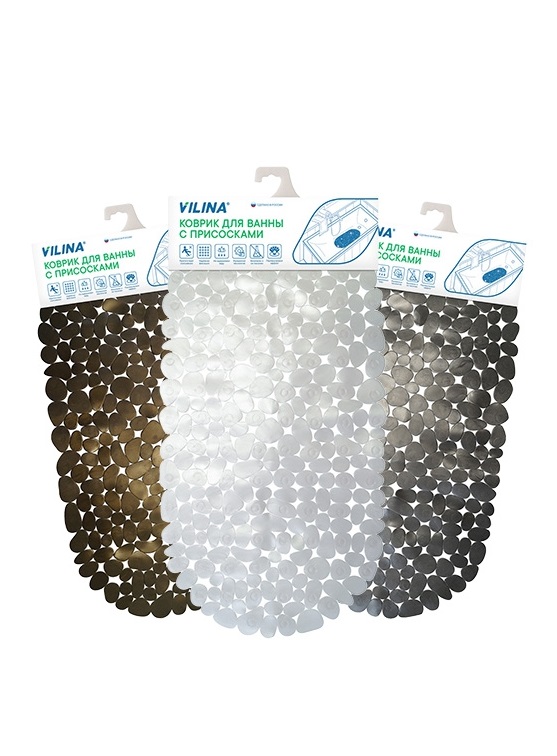 Коврик упругий и прочный, не впитывает воду, быстро сохнет. Благодаря высокому качеству присосок коврик надежно фиксируется на дне ванной и препятствует скольжению