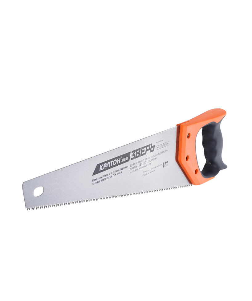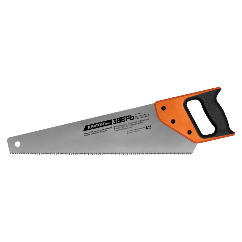 Ножовка бренда Кратон с длинной полотна 400 мм, шагом 5 мм имеет 2-гран...