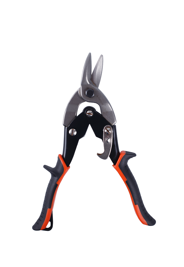 прочной хромованадиевой стали. Изделие используется для разрезания металлических листов. Упоры для пальцев оснащені специальными накладками. Чтобы хранение было безопасным, нужно использовать стопорный крючок, а для подвешивания использовать кольцо. Благодаря рычажной системе, прикладываемое усилие рук уменьшается.