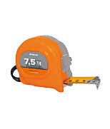 Ширина ленты — 25 мм, длина — 7,5 м. Ударопрочный пластиковый корпус имеет полукруглую форму, что позволяет легко транспортировать и хранить. Ремешок на корпусе рулетки позволяет при работе носить ее на запястье, оставляя рабочую ладонь свободной. Цена деления — 1 мм, оно нанесено отчетливо, не истирается. Класс точности – 2".