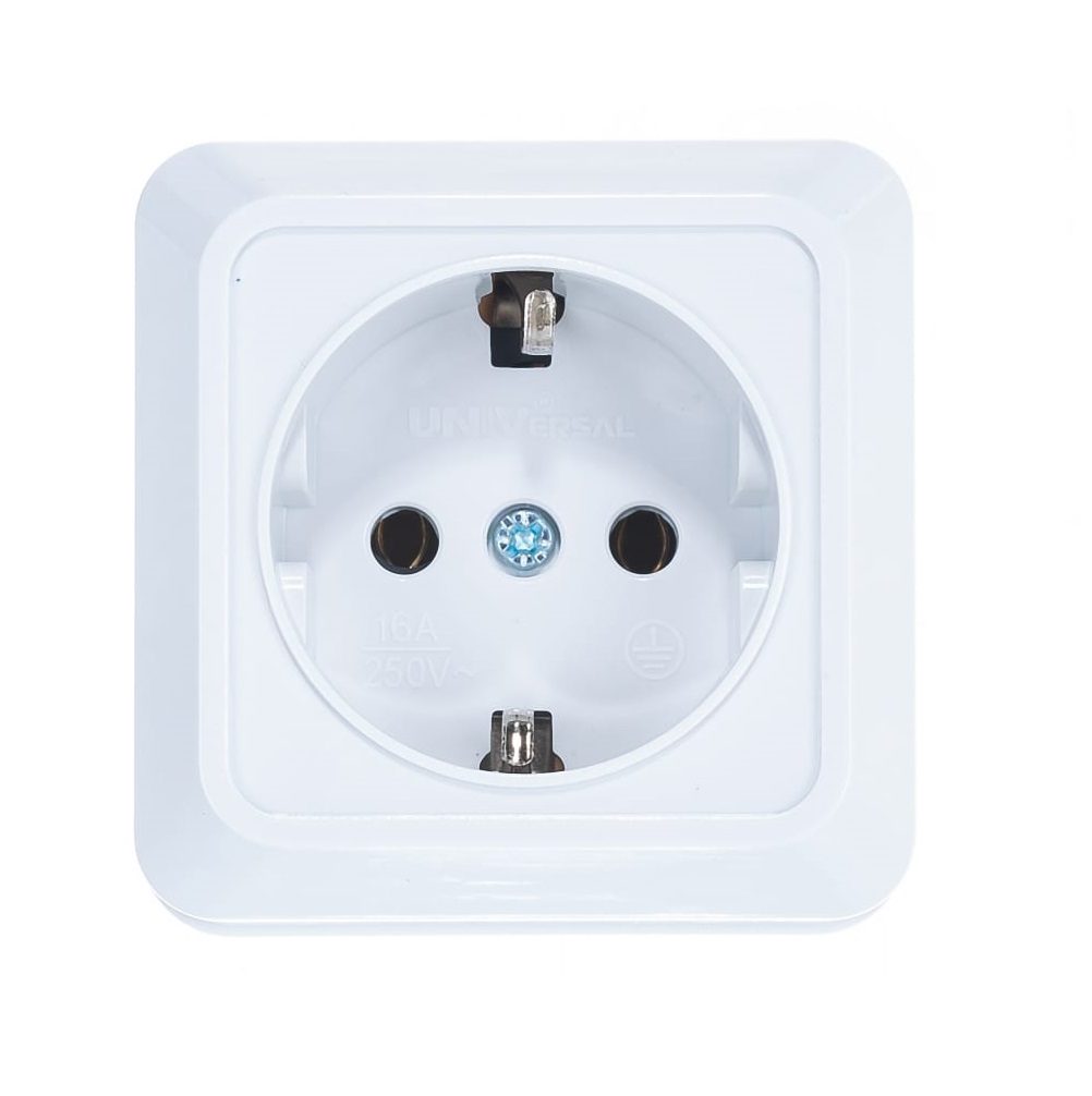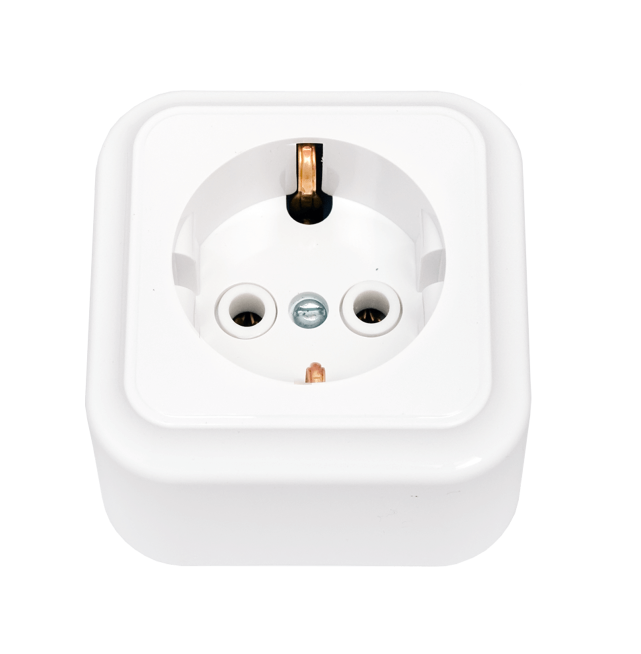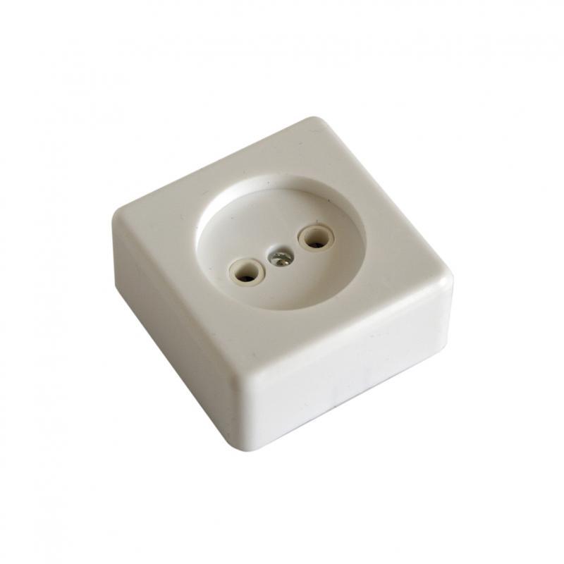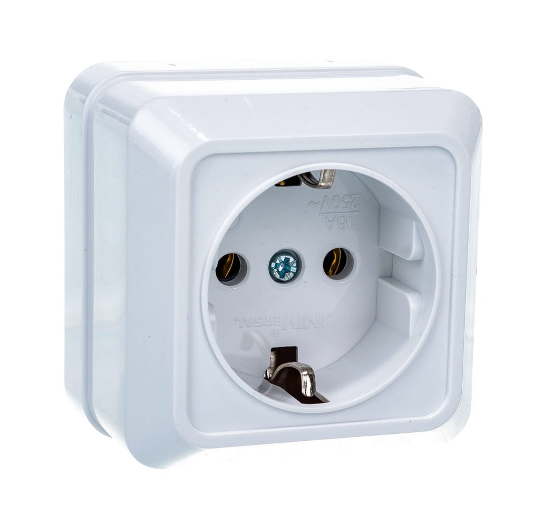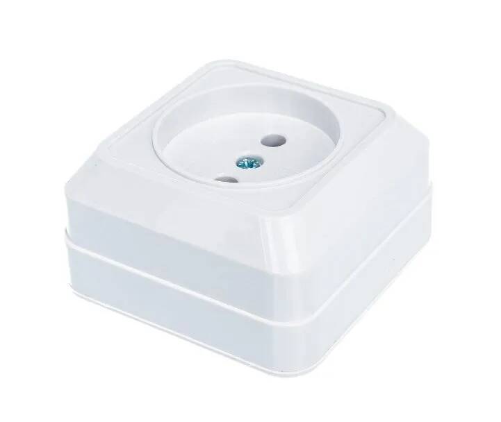 исах, домах или производственных предприятиях открытым способом. Однопостовая розетка имеет компактный пластиковый корпус универсального белого цвета.