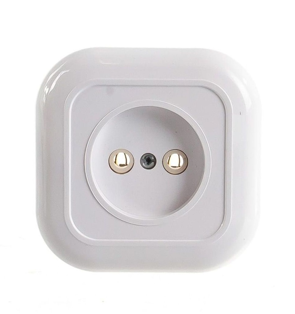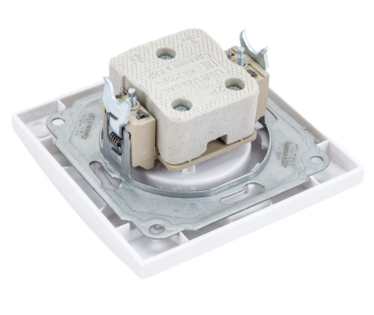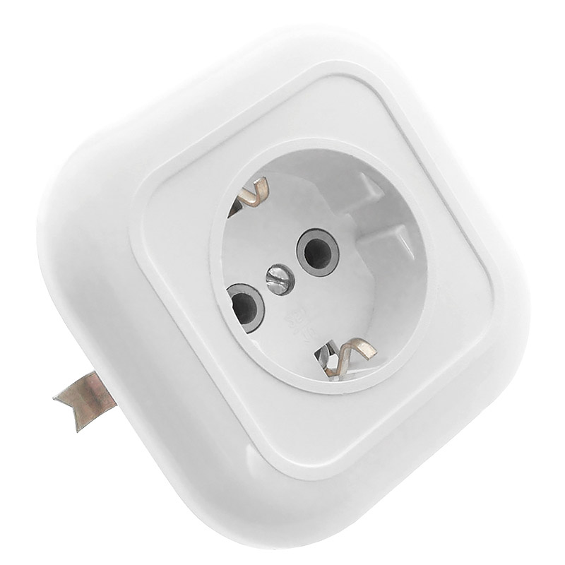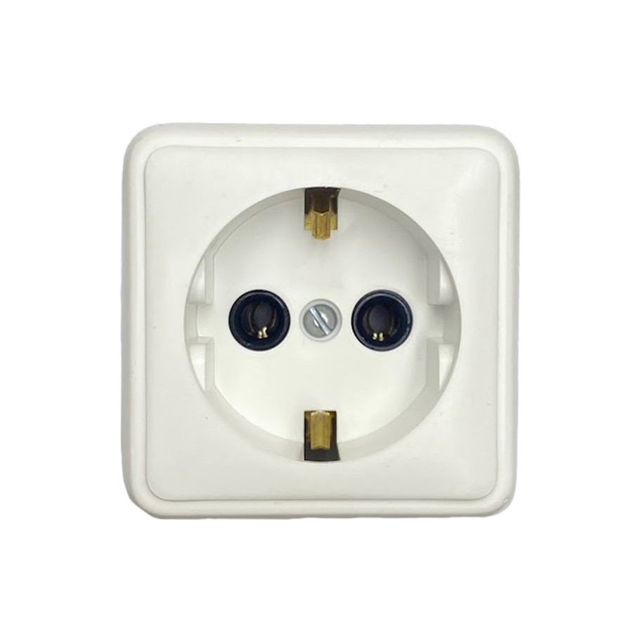 исах, домах или производственных предприятиях открытым способом. Однопостовая розетка имеет компактный пластиковый корпус универсального белого цвета.