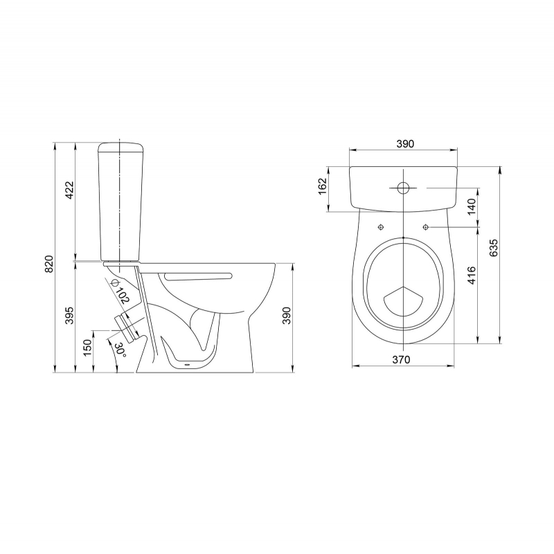Унитаз-компакт с функцией "антивсплеск" отличается прямым бачком, который позволяет придвинуть изделие вплотную к стене.