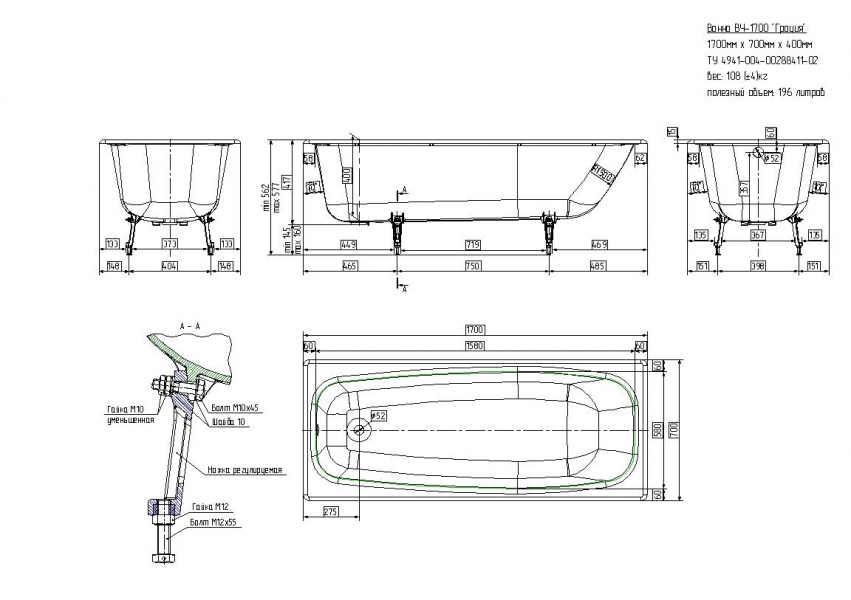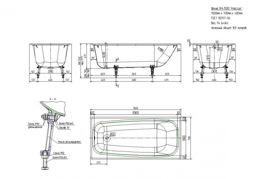 Ванна чугунная «Классик» реализуется в категории качества «Универсал».