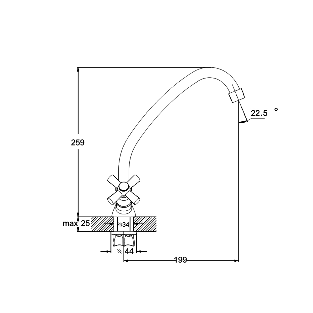 Комплектность: корпус смесителя, 2 шланга-подводки длиной 40см, комплект крепления к мойке