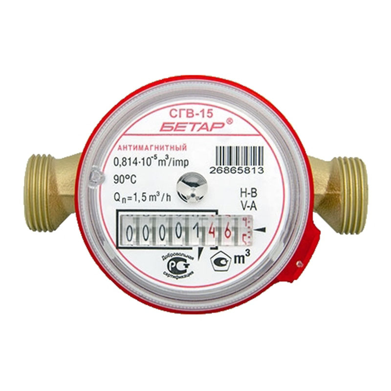 ы, протекающей по трубопроводу при температуре от плюс 5°C до плюс 90 °С для счетчиков горячей воды (СГВ) при давлении не более 1,0 МПа (10 кгс/см2). Счетчики типа СГВ в силу своей универсальности и применения одинаковых термостойких материалов могут быть использованы для измерения объема, как холодной, так и горячей воды.