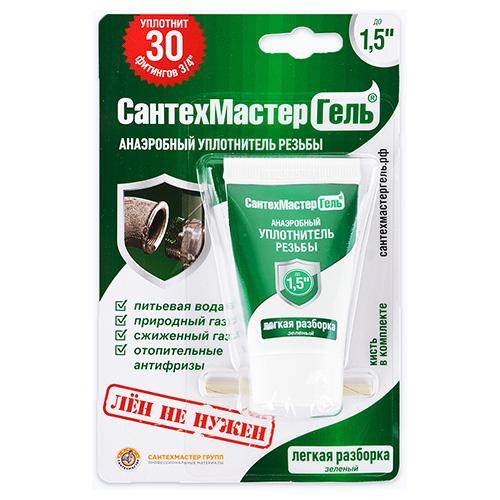 Гель Сантехмастер (зеленый тюбик) представляет собой резьбово...