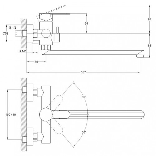 Установка: настенная, над раковиной