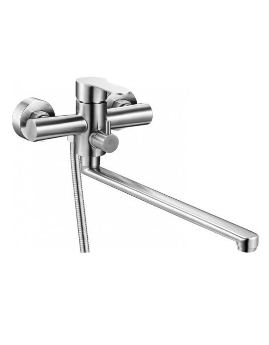 Комплектность: корпус смесителя, излив, шланг д/душа 150см с прокладками,