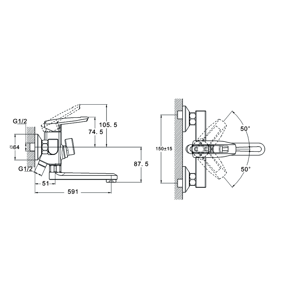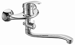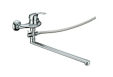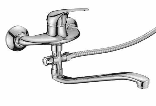 Комплектность: корпус смесителя, дивертор с прокладками, излив, шланг