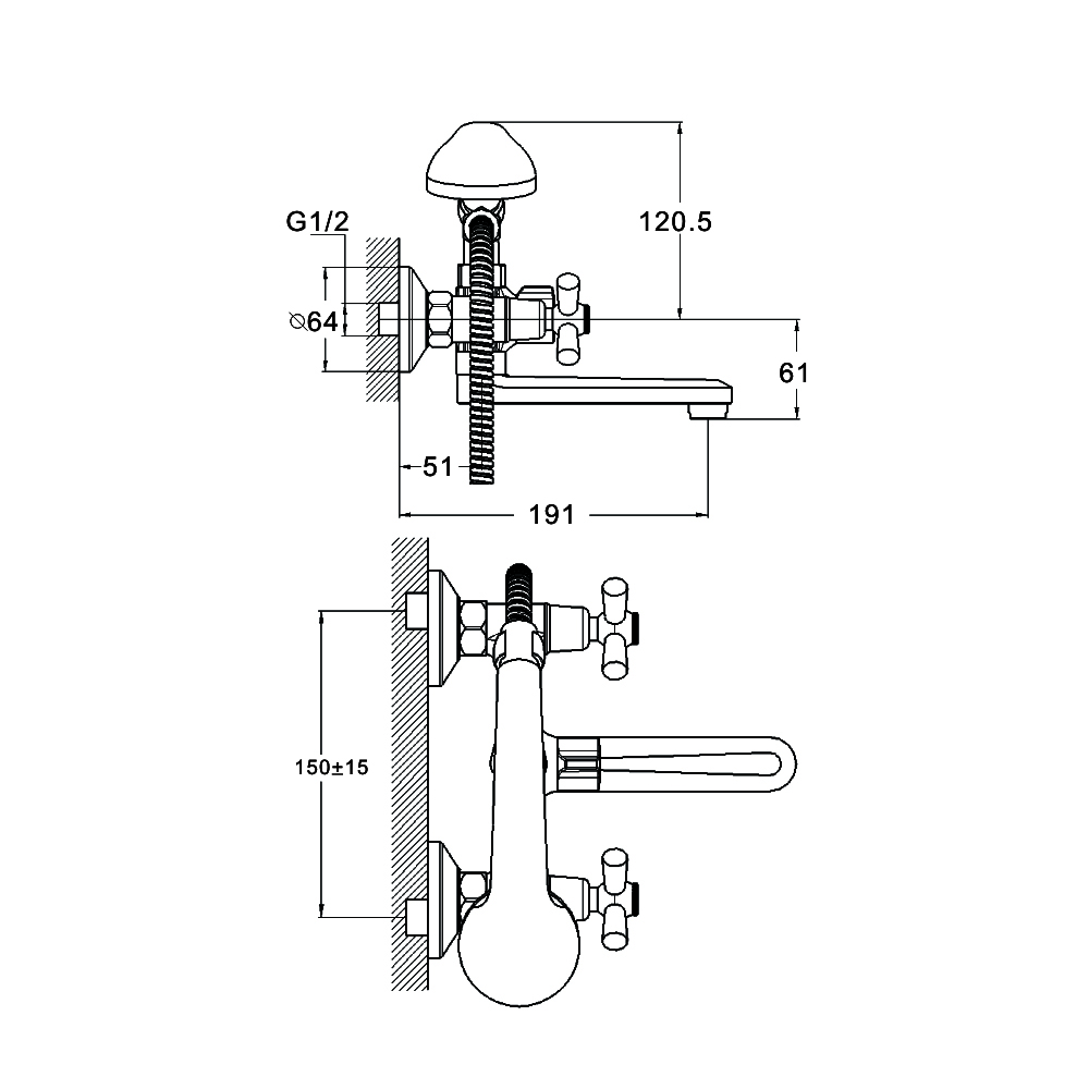 Комплектность: корпус смесителя, шланг д/душа 150см с прокладками,