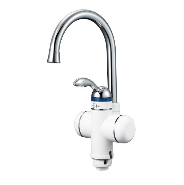 менимым источником горячей воды в квартире, на даче, в магазине или офисе. Если отключили горячее водоснабжение, а бойлер не справляется с нагрузками или нет места для его установки, то кран с проточным электроводонагревателем решит проблему. Смеситель-водонагреватель прост в подключении, работы по подключению можно провести самостоятельно, не прибегая к помощи специалиста. Подходит для установки в ванной комнате или кухне.