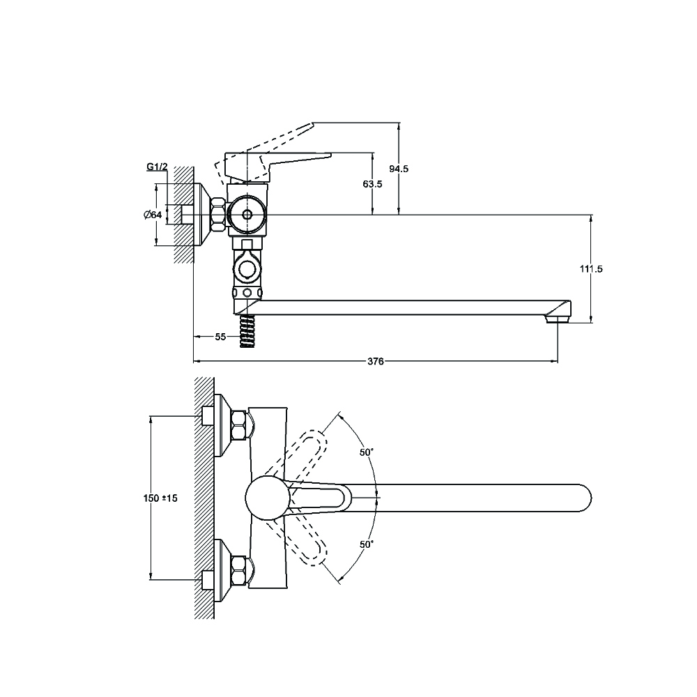 Длина излива: 140 мм