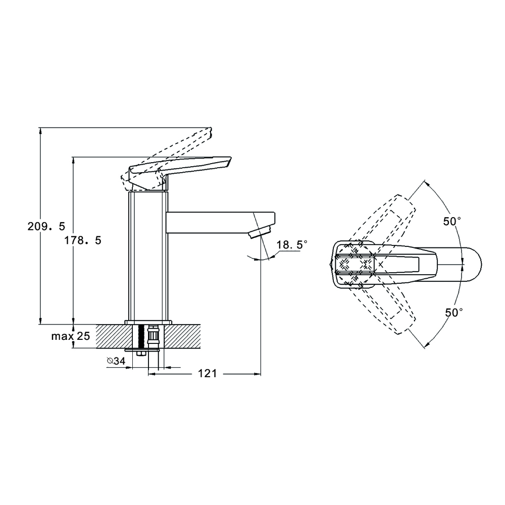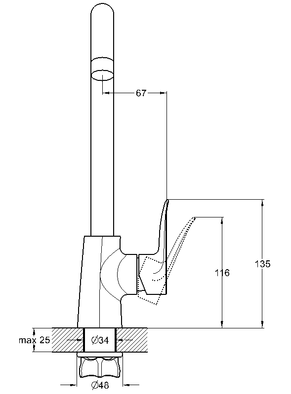 Боковая ручка, излив высокий