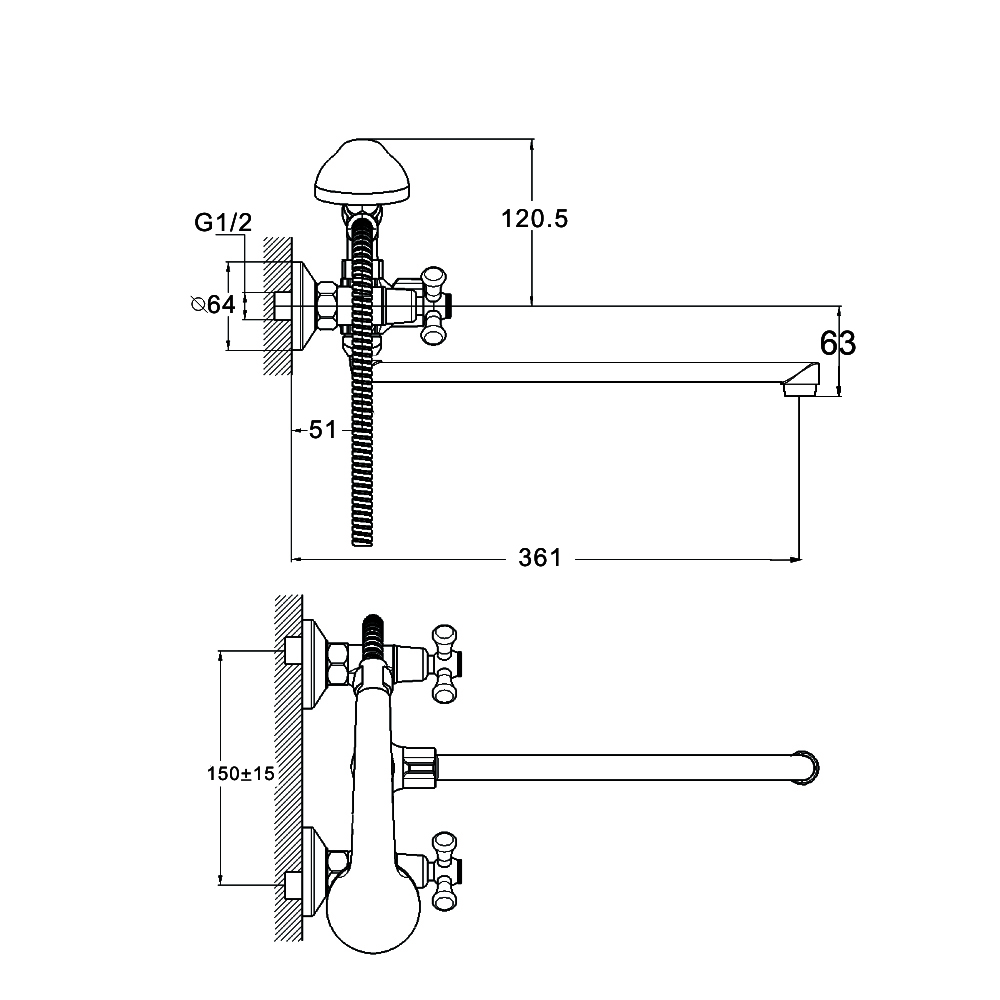 Комплектность: корпус смесителя, излив, 2 шланга-подводки длиной