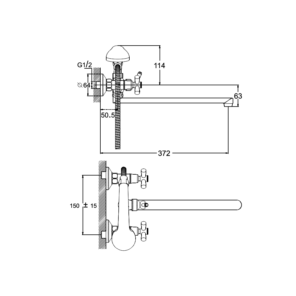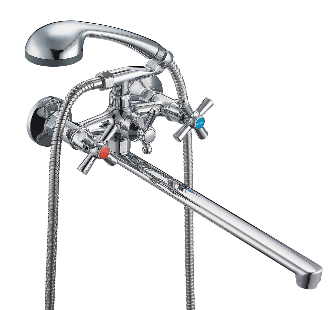 Комплектность: корпус смесителя, излив, 2 шланга-подводки длиной