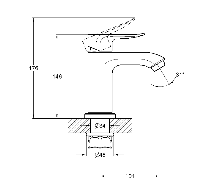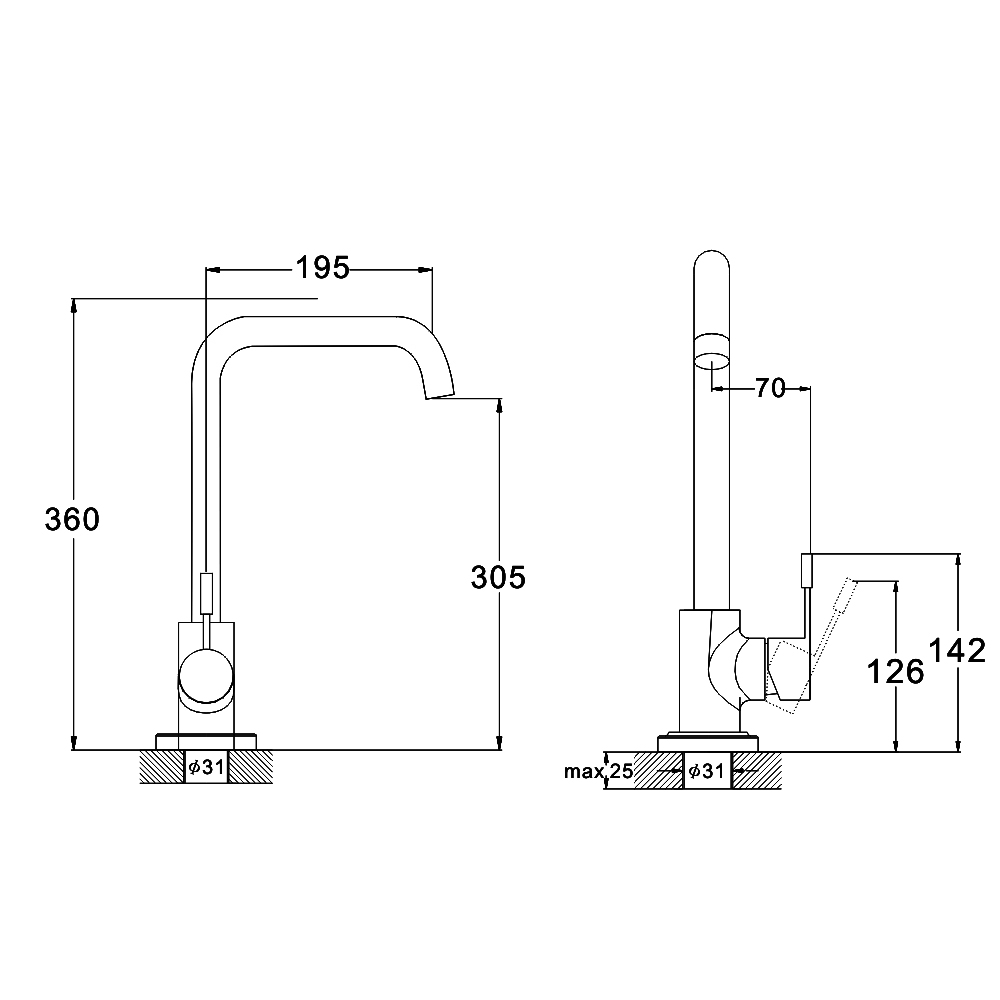 Боковая ручка, излив высокий