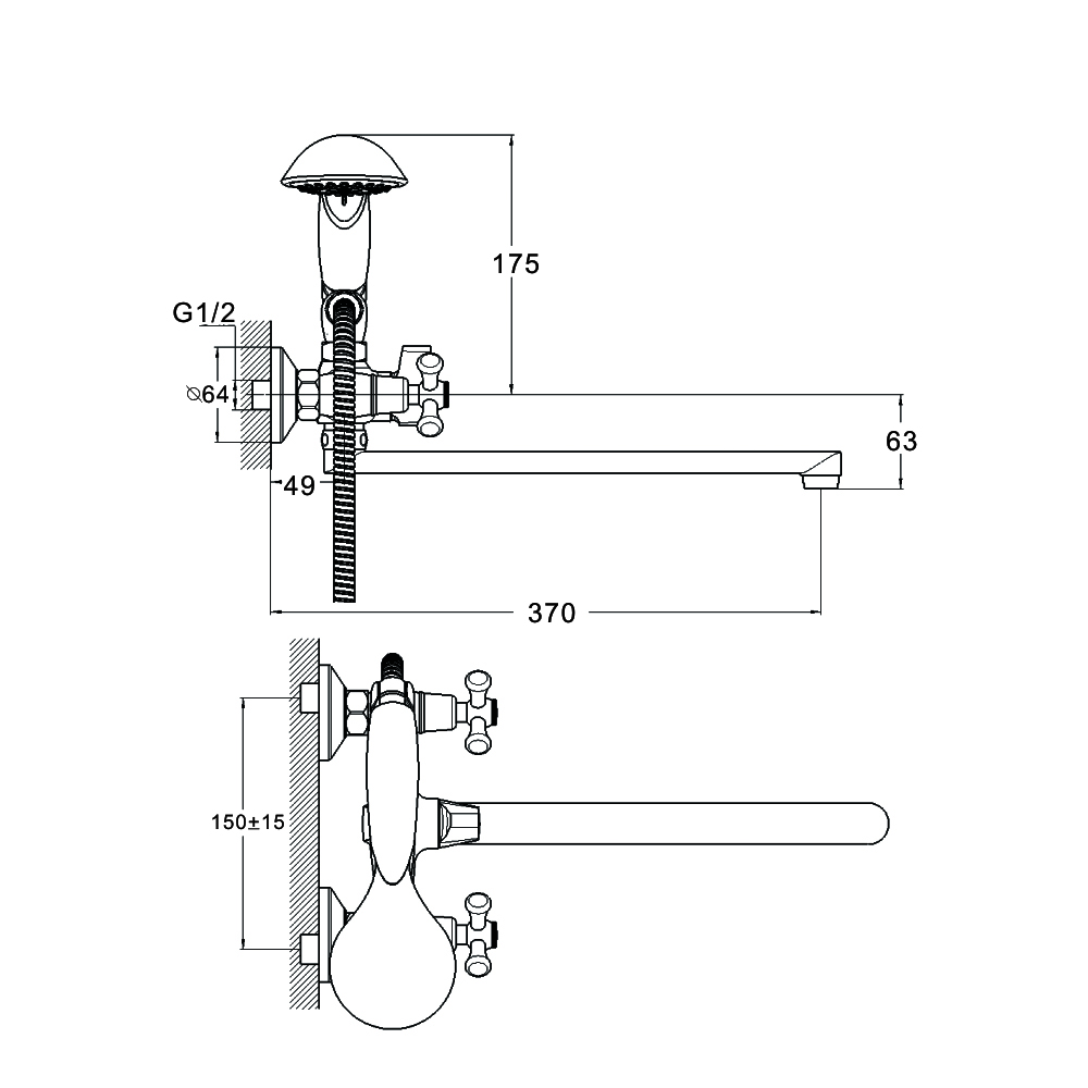 Комплектность: корпус смесителя, излив, шланг д/душа 150см с прокладками,