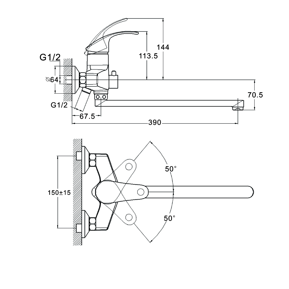 Боковая ручка, излив высокий