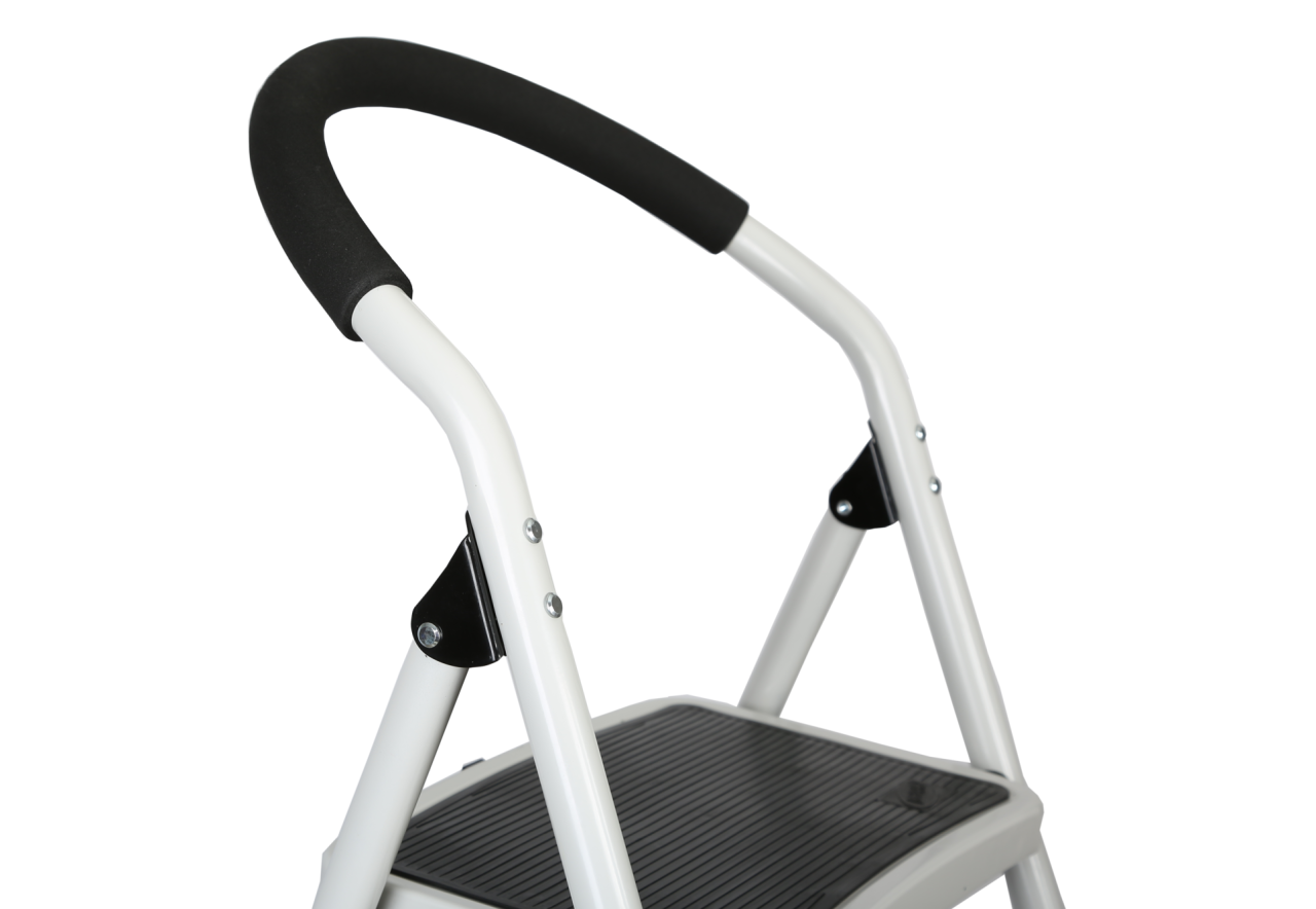 Для большей безопасности и удобства эксплуатации стремянки имеют  “Замок безопасности" и удобную эргономичную ручку. Современный дизайн стремянки, хорошо впишется в любой интерьер, в сложенном состоянии не займет много места.