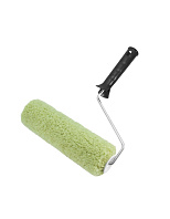 Полиакрил зеленый на тканой основе, высота крученого ворса 18 мм и плотностью 1080 гр./кв.м. Диаметр ролика 42 мм, диаметр бюгеля 6 мм. Чёрная пластиковая ручка.
