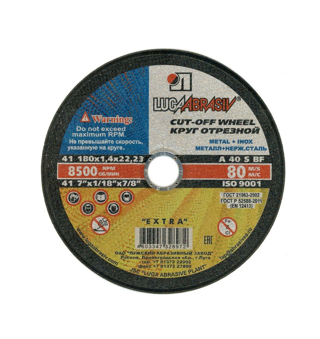 Наличие в составе связки нормального электрокорунда с окисью алюминия позволяет наиболее эффективно использовать круг при резке черного металла и стали различных марок.