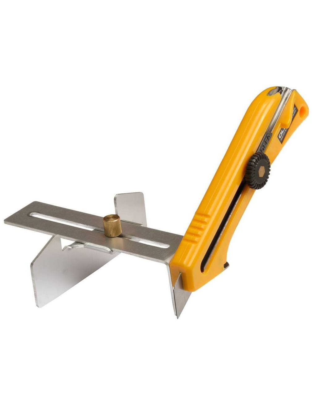 Особо прочный нож Olfa, с усиленной направляющей из нержавеющей стали, имеет винтовой механизм фиксации лезвия, обеспечивающий прочное крепление лезвия шириной 18 мм, встроенный скобоудалитель и приспособление с линейкой длиной 10 см и ценой деления 0,5 см. Приспособление включает в себя линейку с прорезью и упор. Линейка крепится с помощью винтового фиксатора к рукоятке, имеющей специальное ребро для фиксации ее положения. В прорезь линейки устанавливается упор, положение которого выверяется по шкале, и фиксируется винтом.