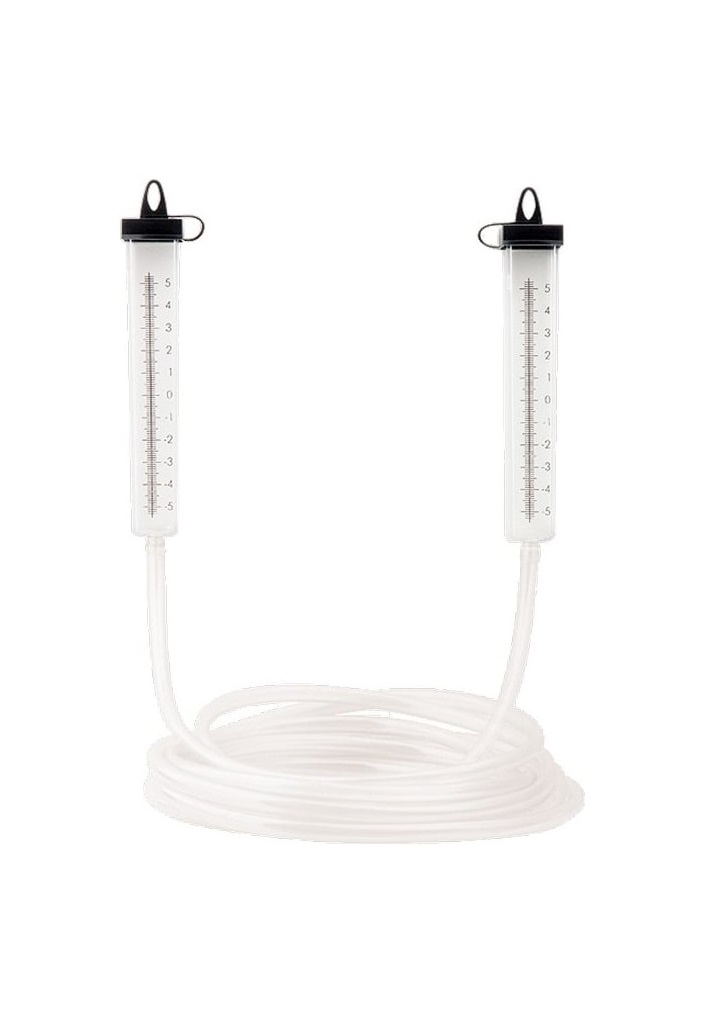 ление с двумя пластмассовыми колбами, соединенными между собой гибким шлангом. Используется для определения расположения предметов относительно горизонтальной поверхности. Благодаря большой длине уровня - 20 метров, можно проводить измерения на значительных расстояниях.