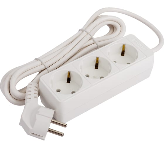 испособление для использования дома или в офисе. Каждое розеточное гнездо оснащено заземляющими контактами. Изделие позволяет одновременно подключить до трех вилок различных электроприборов бытового назначения.
