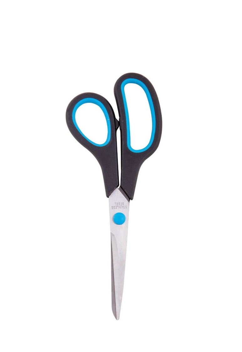 Ножницы Office Space 19 см эргономичные ручки черные с синими вставками П...