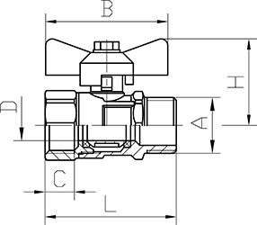 231 ВхН – ручка бабочка, резьба внутренняя - наружная