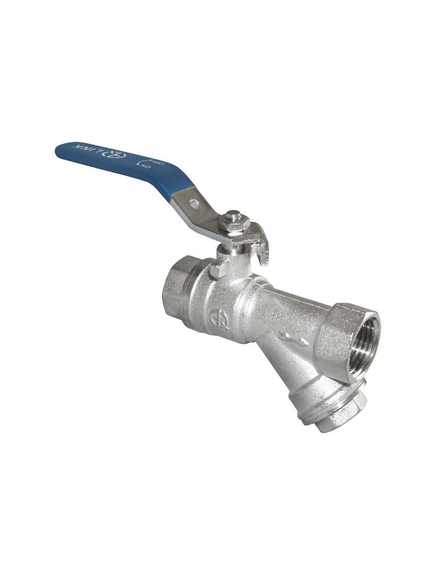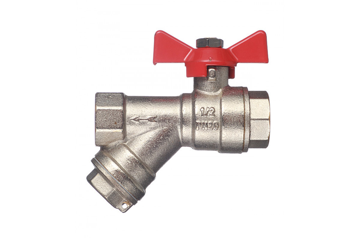 Шаровый кран со встроенным фильром грубой очистки представляет собой совмещенный механизм, состоящий из стандартного шарового крана и косого фильтра, внутри которого расположен фильтрующий элемент, выполненный из нержавеющей стали. Корпус и ревизионная пробка шарового крана изготовлены из латуни. Для защиты от коррозии, долговечности пользования и придания изделию эстетичного на корпус крана нанесено никелевое покрытие.